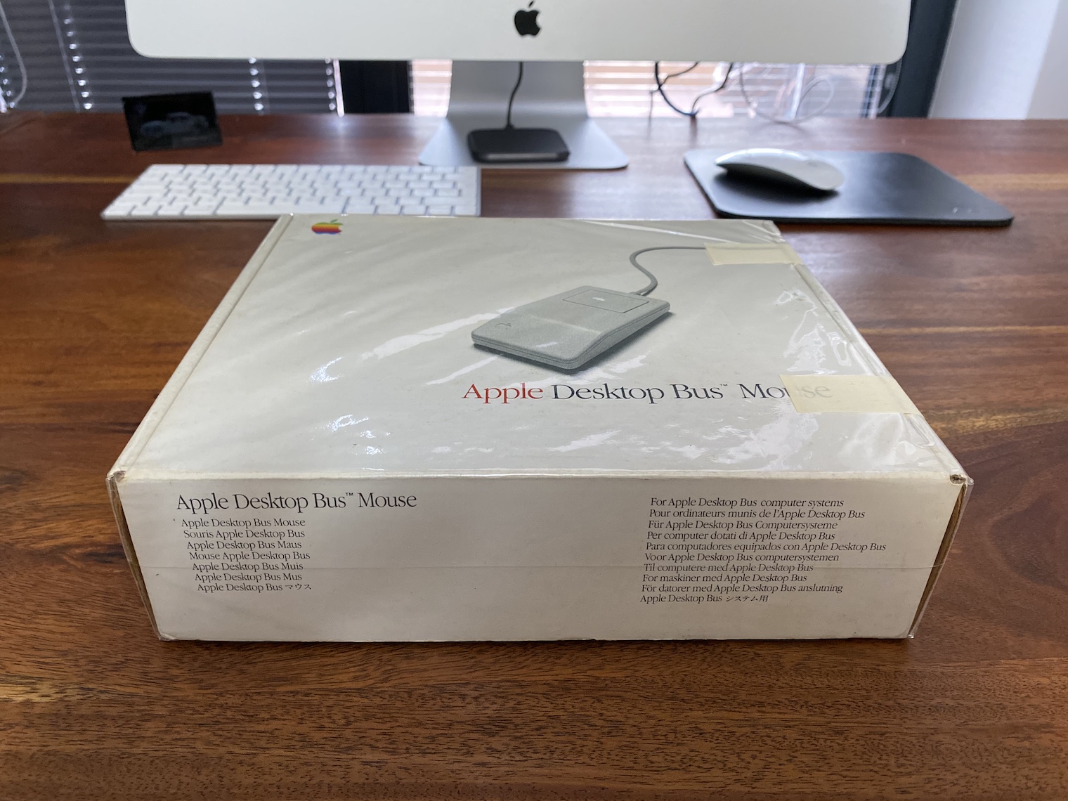 Krabice pak milovníky Applu potěší i tím, že kromě roku 1988 a faktu, že výrobce je Apple Computer, nese informaci o tom, že byla myš sestavena v USA. Jedná se tedy o produkt z doby, kdy ještě Apple neuvažoval nad tím, že by dokázal výrobu přenechat zcela jiným externím firmám tak jak je tomu dnes. Další zajímavostí je pak označení produktu na krabičce v sedmi různých jazycích. Dnes již zkrátka vidíte Magic Mouse a na nějaké překlady typu Maus, Souris nebo Muis můžete zapomenout.