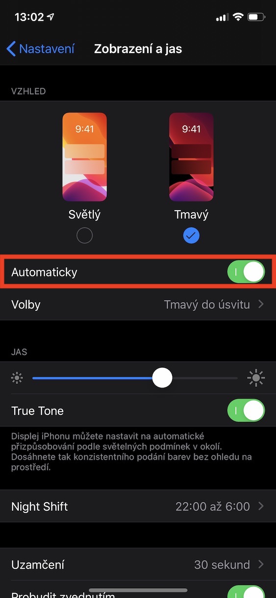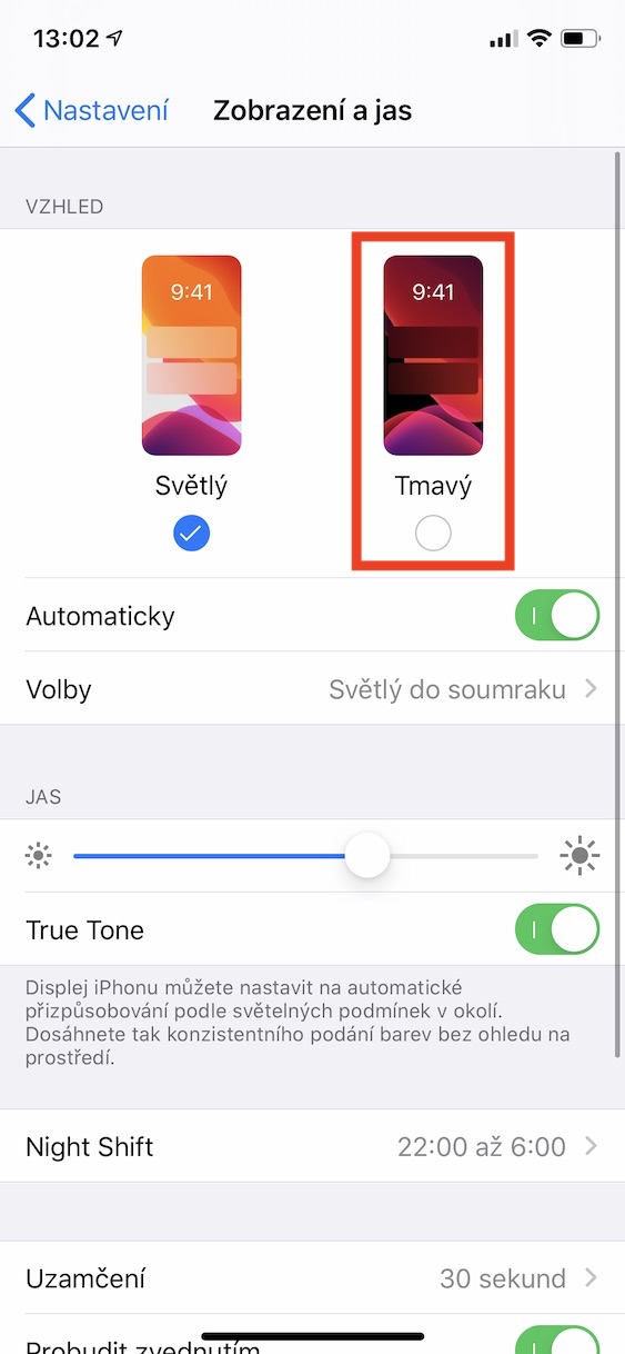 Se špatnou výdrží baterie se uživatelé iOS setkávají snad od pradávna. Často se stává, že s novými aktualizacemi operačních systémů jde výdrž baterie silně dolů. Jakým způsobem lze tedy v rámci iOS 13 zabránit tomu, aby baterie vydržela déle? Využít můžete například tmavého režimu, který dokáže na OLED displejích některých iPhonů zobrazovat černou barvu vypnutými pixely. Tmavý režim můžete aktivovat v Nastavení, kde přejděte do sekce Zobrazení a jas. Zde pomocí přepínače aktivujte tmavý režim, anebo si nastavte automatické přepínání.