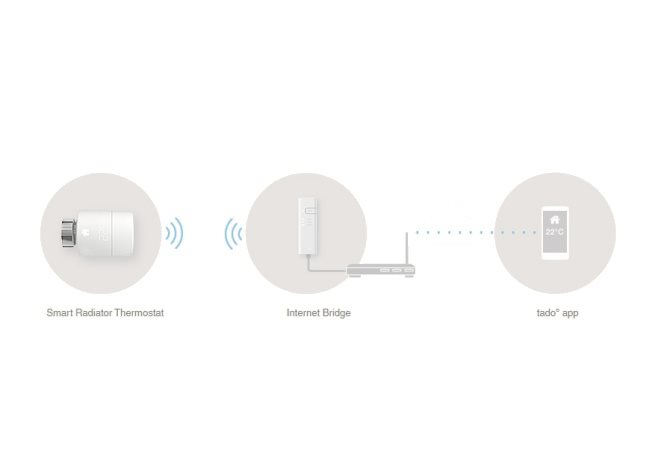 Přívětivá je taktéž samotná instalace. Tyto termostatické hlavice jsou vhodné především pro domácnosti, které nemají vlastní kotel nebo využívají dálkového vytápění. V takovém případě stačí jednoduše nahradit stávající hlavici hlavicí značky Tado, ta se automaticky spojí s Internet Bridgem a ten poté pomocí routeru komunikuje s aplikací ve vašem telefonu.