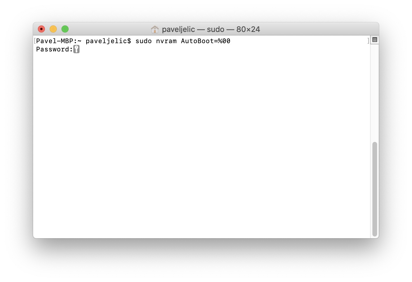 A vložte jej do okna Terminálu. Poté jej potvrďte stisknutím tlačítka Enter. Budete vyzvání, abyste zadali heslo k vašemu účtu, což proveďte. Nutno podotknout, že se v Terminálu při psaní hesla nezobrazují zástupné znaky (hvězdičky), a proto je nutné heslo napsat „naslepo“, a poté potvrdit klávesou Enter. Jakmile tento příkaz potvrdíte, tak je hotovo. Od této doby se váš MacBook nebude automaticky zapínat po otevření víka, a ani po připojení k napájení. Pokud byste chtěli vrátit zpět původní nastavení, tak stačí do Terminálu vložit příkaz uvedný níže, a poté jej potvrdit klávesou Enter.
