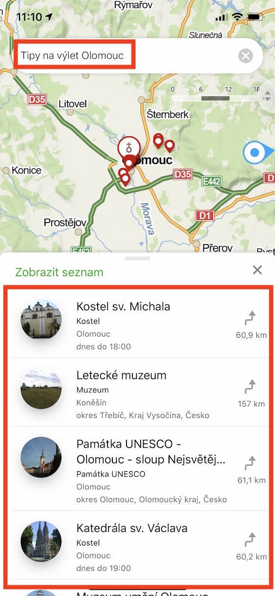 Nevíte, co dneska budete dělat? Nechcete trčet doma na zadku a koukat na seriály? Pokud jste si na tyto otázky odpověděli kladně, může vám v naplánování výletu pomoci aplikace Mapy od Seznamu. Pro vyhledání výletu stačí, abyste klepnuli do pole vyhledávače, kde poté stačí v kategoriích zvolit možnost Tipy na výlet. Na mapě se vám ihned zobrazí všechny dostupné výlety a na vás už je výběr toho správného. Pokud navíc ve vyhledávači za text Tipy na výlet napíšete konkrétní místo, například Tipy na výlet Olomouc, zobrazí se vám výlety dostupné pouze v Olomouci.