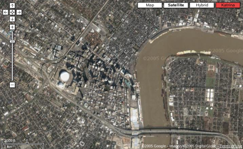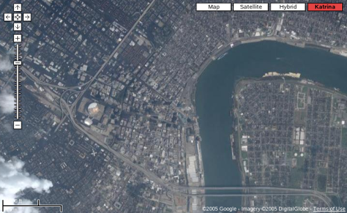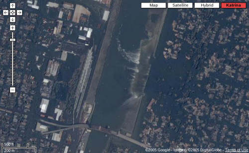 V září roku 2005 zasáhl část světa ničivý hurikán Katrina. Společnost Google nelenila a rozhodla se přidat do svých map satelitní záběry oblasti New Orleans ve stavu, v jakém ji Katrina zanechala. Celý svět se tak z ptačí perspektivy mohl podívat na to, jak ničivý dopad měl hurikán na část pobřeží. Kromě zobrazení klasické mapy, satelitní mapy a hybridního režimu dostali v té době uživatelé možnost vybrat “režim Katrina”, prohlédnout si rozsah škod, které hurikán napáchal, a porovnat situaci po hurikánu s předchozím stavem.