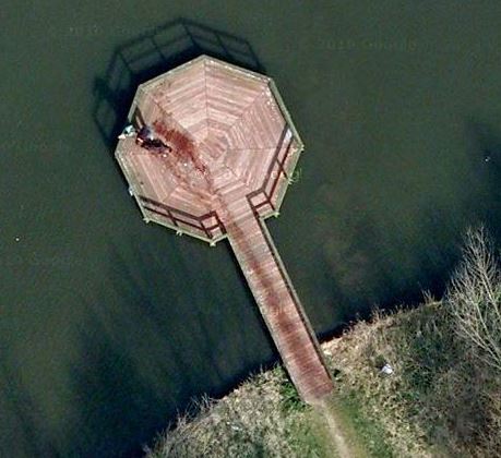 V roce 2013 přišel jeden z uživatelů diskusní platformy Reddit s trochu děsivým objevem – na satelitním snímku mola v blízkosti svého bydliště si všiml obrovských rudých skvrn, vedoucích do jezera. Lidé na internetu začali velmi živě spekulovat o zločinci, který jistě někoho zavraždil a mrtvé tělo hodil do vody. Skutečnost ale byla jiná. Další z uživatelů Redditu přišel s teorií, že se ve skutečnosti jedná o mokré skvrny, které na dřevěném molu zanechal pes, který vylezl z vody, oklepal se a odešel. Díky materiálu, z jakého bylo molo vyrobeno, vypadaly skvrny jako krvavé. Tuto teorii o něco později potvrdil deník Sun. „Krvavé“ molo si můžete na mapě prohlédnout zde. Jaké zvláštní záběry ještě na Google Maps najdete?