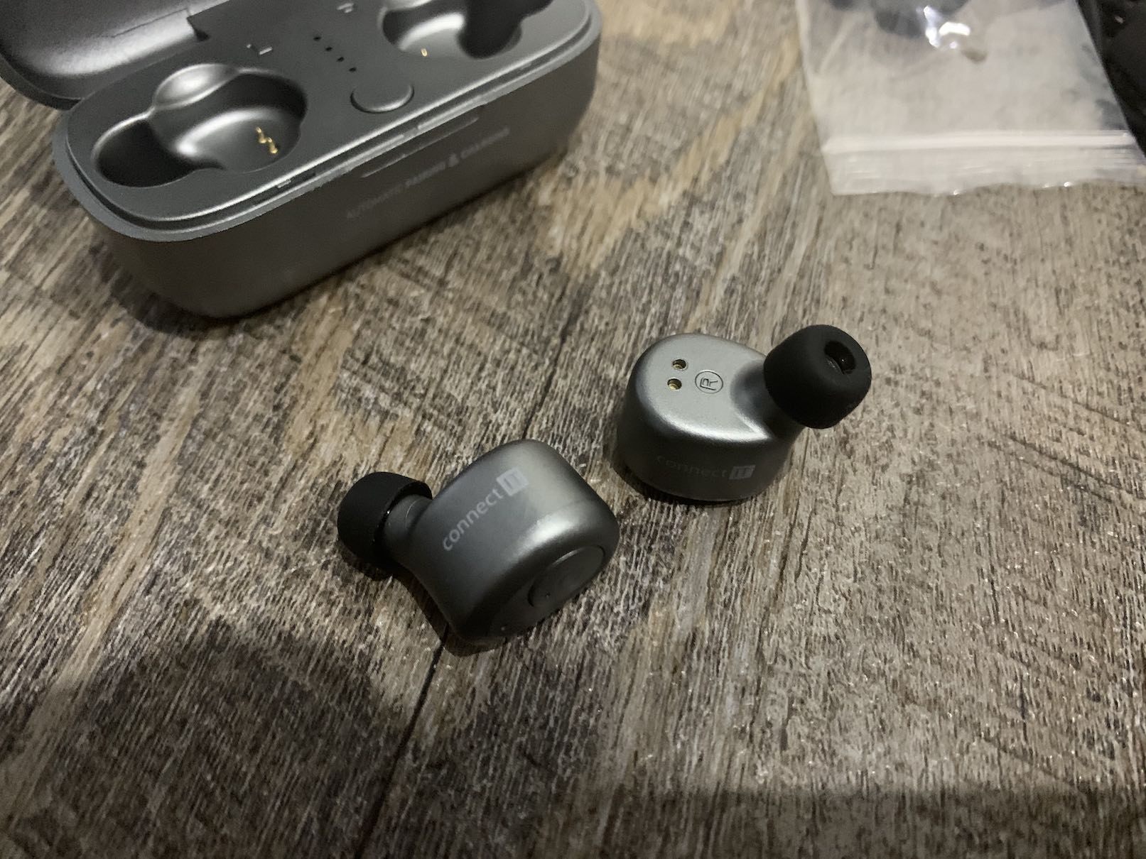 Abyste jakožto výrobce mohl vytvořit bezdrátová sluchátka do tisíci koruny, musíte udělat několik kompromisů. Tělo je v případě sluchátek Connect IT CEP-9100 plastové, stejně tak jako jejich pant. Otevírání horního víka není tak ladné jako v případě AirPods, avšak opět je nutno podotknout, že recenzovaná sluchátka vás vyjdou oproti AirPods na pětinu ceny. Co se týče designu, na horním víku najdete logo Connect IT, ve spodní části poté najdete dodatečné označení sluchátek. Na přední straně se poté nachází text Automatic Pairing & Charging, kdy tohle tvrzení mohu potvrdit doopravdy jen u Charging (nabíjení), nikoliv u Pairing (párování). Na zadní straně poté naleznete microUSB konektor pro nabíjení pouzdra.