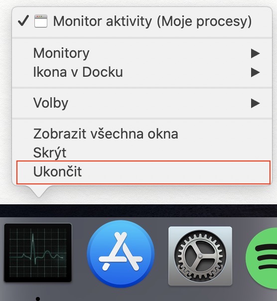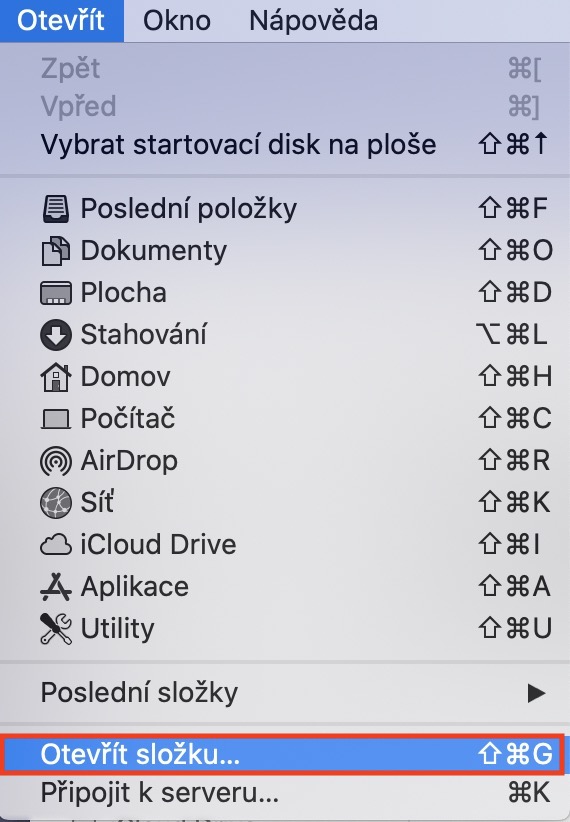 Ještě před tím, než se pustíme do „brutálnějšího“ řešení problému, spusťte Monitor aktivity, a poté v horní liště klepněte na záložku Zobrazení. Zde si zkontrolujte, zdali máte zaškrtnutou položku Sloupce. Pokud ano, tak postupujte dále ve čtení. Nyní je nutné, abyste aplikaci Monitor aktivity kompletně ukončili. Toho docílíte tak, že v Docku klepnete na ikonu Monitoru aktivity pravým tlačítkem (dvěma prsty), a poté zvolíte možnost Ukončit. Po ukončení se přesuňte do aktivního okna aplikace Finder, a poté v horní liště klepněte na záložku Otevřít. Z menu poté vyberte možnost Otevřít složku…, popřípadě můžete využít klávesové zkratky Shift + Command + G. Poté se zobrazí malé okno, do kterého vložte následující cestu: