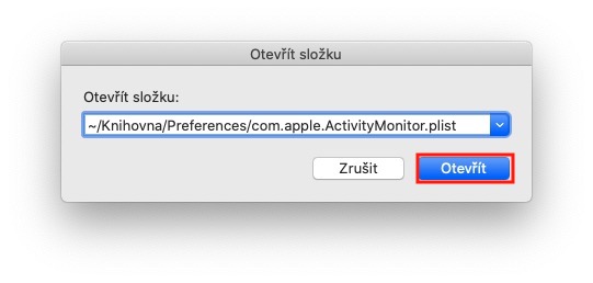 Jakmile tak učiníte, tak stiskněte tlačítko Otevřít. Otevře se vám okno Finderu s označeným souborem com.apple.ActivityMonitor.plist. Naposledy se ujistěte, že máte program Monitor aktivity vypnutý, a poté zmíněný soubor přesuňte do koše (stisknutí pravého tlačítka, popřípadě dvěma prsty, a poté zvolení možnosti Přesunout do koše).