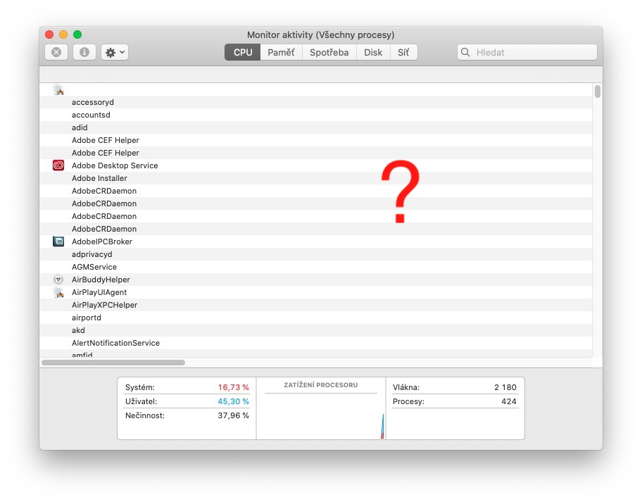 Co dělat, když se vám na Macu v aplikaci Monitor aktivity nezobrazují sloupce