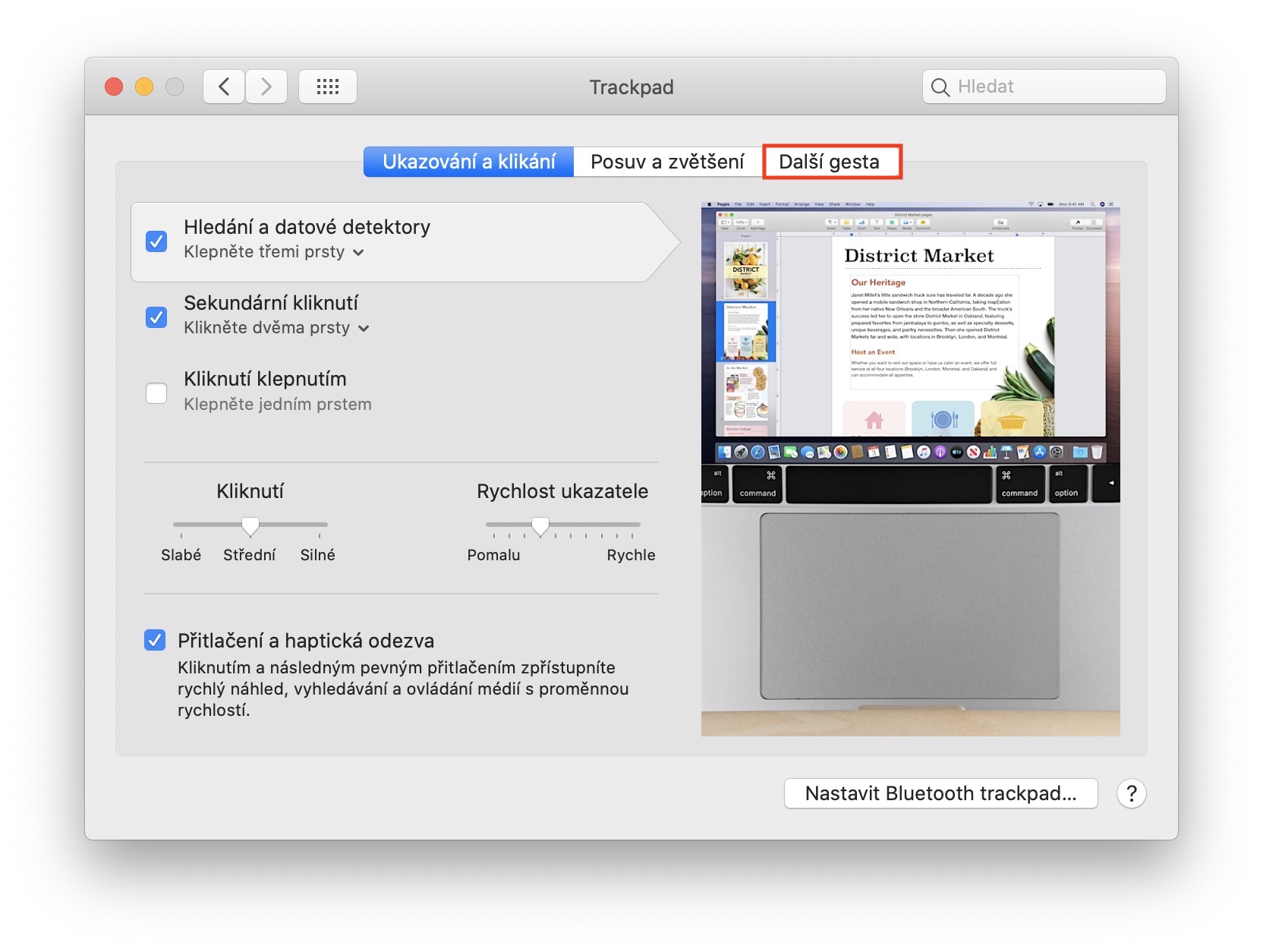 V tomto odstavci se společně podíváme na to, jakým způsobem můžete deaktivovat gesto na trackpadu, které slouží k otevření Launchpadu. V tomto případě klikněte v levém horním rohu na ikonu , a poté zvolte možnost Předvolby systému… Z nově zobrazeného okna se přesuňte do sekce Trackpad, kde se v horním menu přesuňte do záložky Další gesta. Zde jednoduše stačí, abyste možnost Launchpad odškrtnuli.