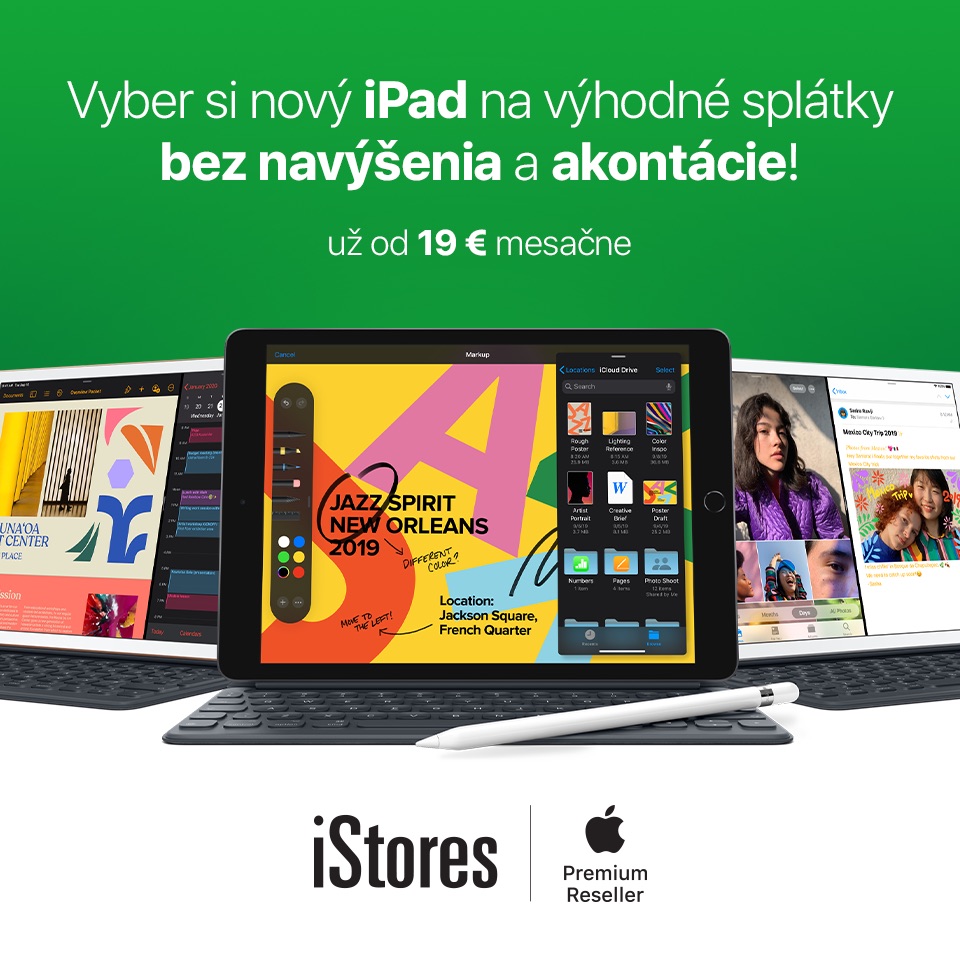 Komerční sdělení: Najlepší čas na kúpu nového iPadu je práve teraz. Vyber si v iStores jeden z vybraných iPadov na splátky bez akontácie a navýšenia už od 19 € mesačne a k nemu doplnky, ktoré z neho urobia ešte šikovnejšieho a praktickejšieho pomocníka.