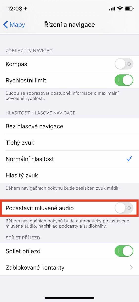 Pokud patříte mezi uživatele, kteří v autě rádi poslouchají podcasty, tak se určitě nechcete nechat rušit pokyny navigace (či jinými pokyny). Kvůli nim vám totiž může část podcastu jednoduše utéct a vy tak přijdete o informace, které by pro vás mohly být důležité. Naštěstí existuje funkce, díky které se přehrávání podcastů vždy před určitým pokynem z CarPlay pozastaví, a jakmile bude pokyn ukončen, tak se podcast opět spustí. Takto máte 100% jistotu toho, že uslyšíte podcast celý a bez mezer. Pro aktivaci této funkce přejděte na vašem iPhonu do Nastavení, kde rozklikněte možnost Mapy. Zde rozklikněte sekci Řízení a navigace a aktivujte funkci Pozastavit mluvené audio.