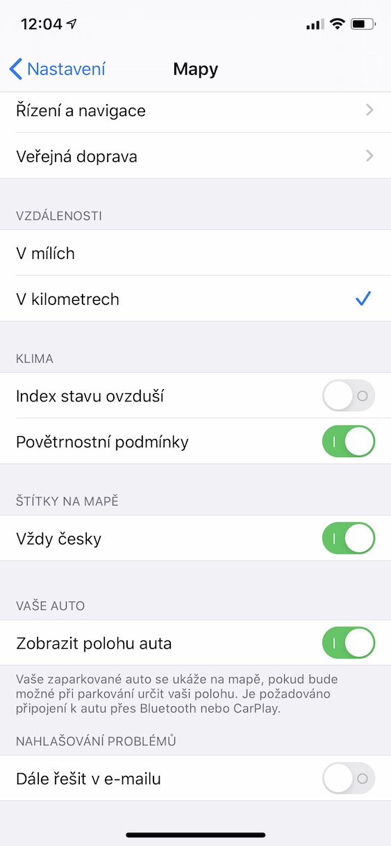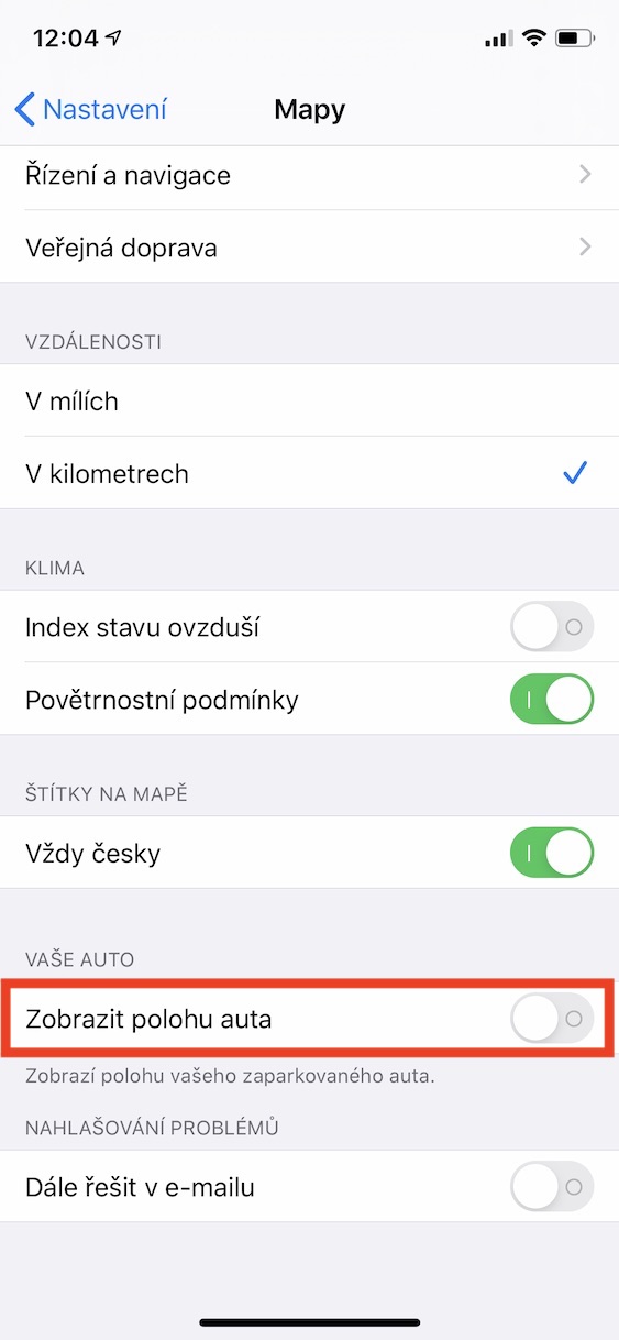 Není moc pravděpodobné, že byste své zaparkované auto ztratili například někde na sídlišti, či u supermarketu. Pokud se však vydáte někam do zahraničních obchodních parků, tak se v podzemních garážích můžete ztratit opravdu jednoduše. I s tím však inženýři Applu počítali a přidali do CarPlay funkci, která vám jednoduše v Mapách zobrazí, kde jste vaše auto nechali zaparkované. Pro aktivaci této funkce přejděte v CarPlay do Nastavení, kde otevřete možnost Mapy a aktivujte funkci Zobrazit polohu auta.