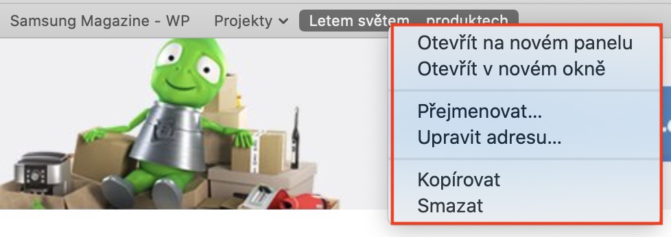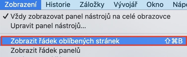 Jak na Macu v Safari aktivovat řádek s oblíbenými stránkami