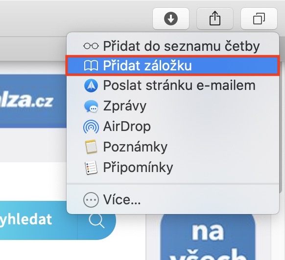 V případě, že chcete do tohoto řádku přidat nějakou stránku, tak na ni přejděte, a poté v pravém horním rohu klepněte na ikonu sdílení. Z menu, které se zobrazí, vyberte možnost Přidat záložku. V novém okně už se jen přesvědčte, že máte nastaveno umístění do složky Oblíbené a nezapomeňte si stránku také přejmenovat. Poté klepněte na Přidat a stránka se v řádku objeví. Stránky v řádku oblíbených stránek poté můžete samozřejmě přetažením myší různé přehazovat. Pokud chcete položku z řádku smazat anebo ji přejmenovat, tak na ni stačí klepnout pravým tlačítkem (dvěma prsty).