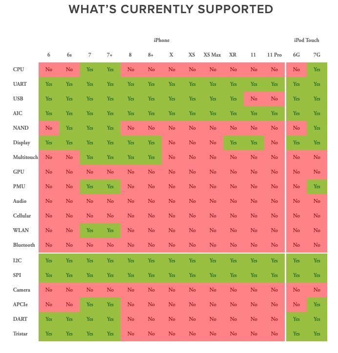 Samozřejmě, celá instalace probíhá jen a jen na vaše vlastní nebezpečí. Tento článek má pouze informativní charakter a magazín Letem světem Applem není zodpovědný za jakékoliv následky, které mohou tímto postupem vzniknout. Prozatím instalace Androidu funguje pouze na iPhone 7 a 7 Plus, avšak na stránkách Project Sandcastle se nachází tabulka, která naznačuje, že by se podpora měla rozšířit na všechny modely iPhonů, a to od 6 až po 11 Pro. Zajímavý je však fakt, že i když se k instalaci Androidu na iPhone využívá hardwarové chyby checkm8, tak se v tabulce možných podporovaných zařízení nachází i nejnovější zařízení. Hardwarová chyba je totiž součástí pouze iPhonů X a starších.