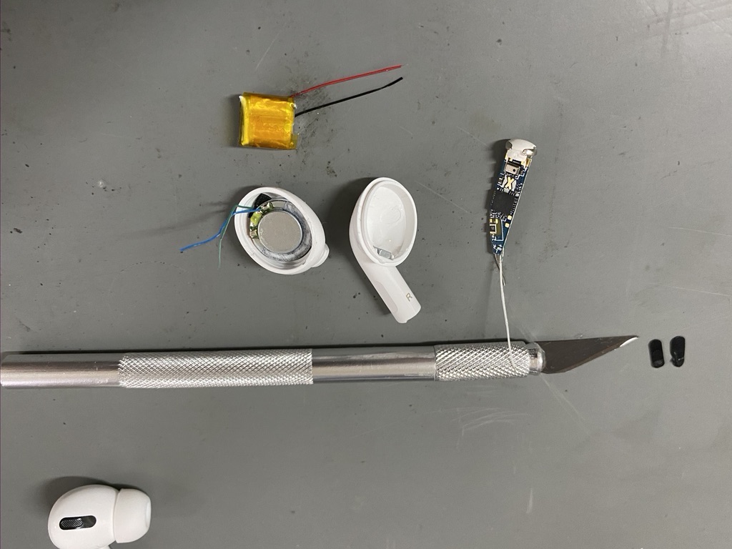 Po rozebrání se ukázalo, že v sluchátkách není originální Apple čip H1, ale důvod, proč iPhone sluchátka identifikuje jako AirPods spočívá v tom, že z čipu přes Bluetooth posílají sluchátka ukradené sériové číslo originálních AirPods Pro a podpis, který se tváří, že se k iPhone připojují skutečné AirPods Pro. Proto je iPhone identifikuje jako originál a ukáže vám na displeji animaci.