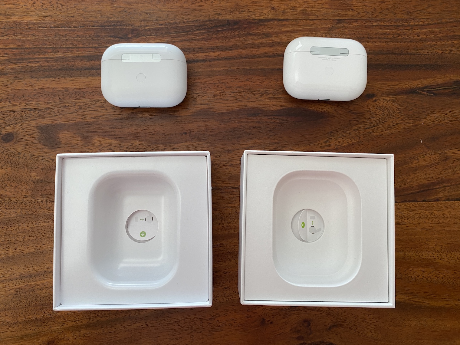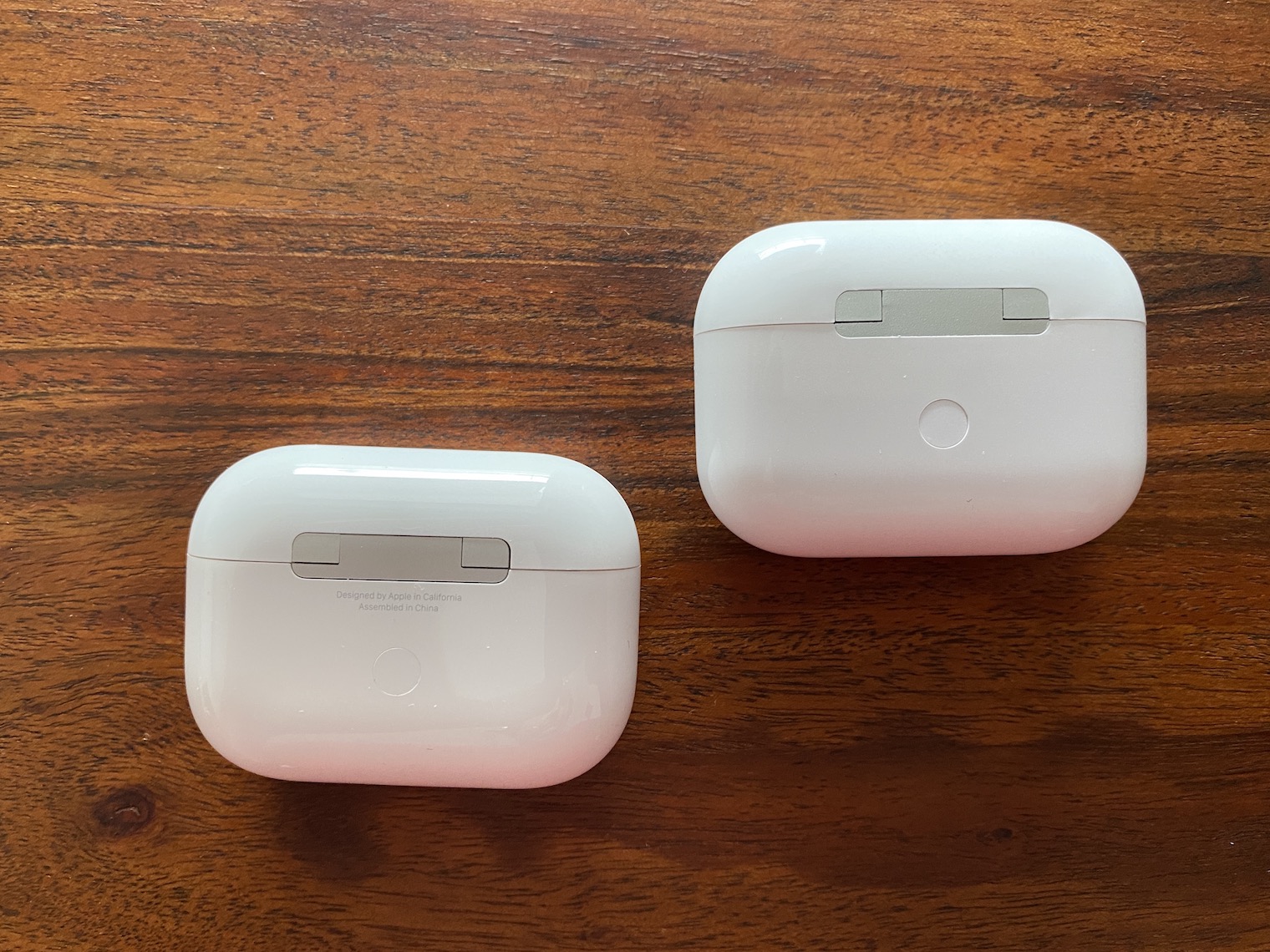 Samotná krabička je v podstatě skutečně 1:1 shodná s krabičkou od skutečných AirPods, které navíc jako bonus můžete ve fake krabičce nabíjet. Poznat tedy, že se nejedná o originál můžete jen podle dvou, respektive tří znaků. Ty ovšem jako člověk, který v životě neměl AirPods Pro v ruce, poznáte jen velmi těžko. První rozdíl je ve váze. Krabička s falešnými sluchátky je totiž nepatrně lehčí než v případě originálu. Druhým rozdílem je výrazněji svítící dioda, ale i zde si rozdílu všimnete skutečně jen v případě, kdy držíte obě krabičky najednou v rukou. Posledním rozdílem, kterého si lze všimnou na první pohled, je chybějící nápis pod zadním pantem, na kterém je uvedeno Designed by Apple in California, Assembled in China. Tento text má pouze originál, ovšem to opět zjistíte až v případě, kdy jste originál měli možnost vidět naživo nebo jste velmi dobře studovali jeho fotky.