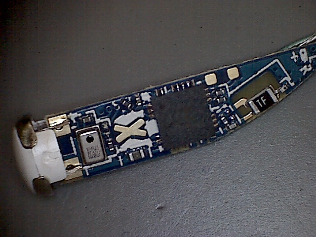 Veškeré černé plochy, které jsou na sluchátku, jsou jen nálepky, mimo místa pro senzor, který je nabarvený barvou. Informační led dioda nemá krytku a svítí jen díky tomu, že je do krabičky vyvrtaný otvor, za kterým je dioda umístěna. Tunel, který vede zvuk do uší, je výrazně užší než v originálních sluchátkách. Místo špuntů, které dodává Apple, jsou zde použité klasické gumičky z běžných čínských sluchátek za pár korun.