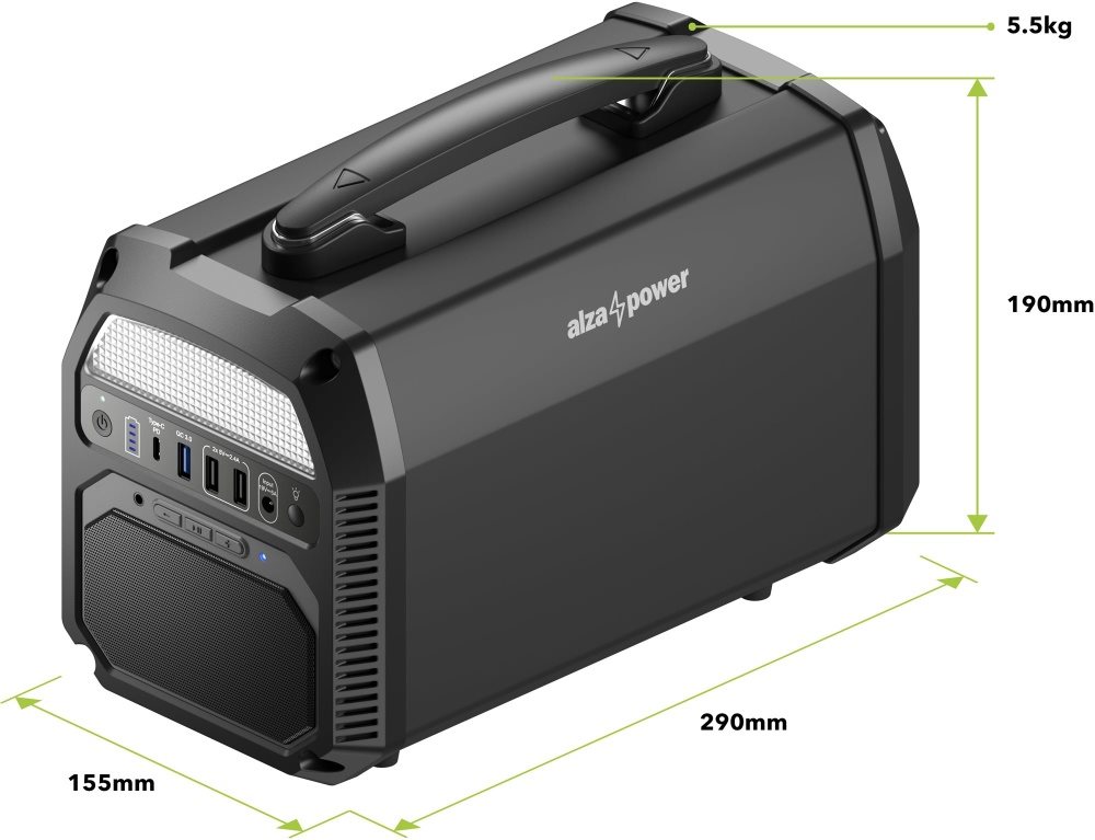 Pokud se podíváte pořádně na všechny tyto funkce, určitě vás musí napadnout, že je tato „powerbanka na steroidech“ poměrně větších rozměrů. Opak je ale pravdou, tedy alespoň částečně. AlzaPower Station PS450 totiž nabízí poměrně kompaktní rozměry a její váha činí „pouze“ 5,5 kilogramů. Když vezmeme v potaz všechny funkce a samotnou kapacitu, musíme uznat, že se jedná skutečně malý produkt.