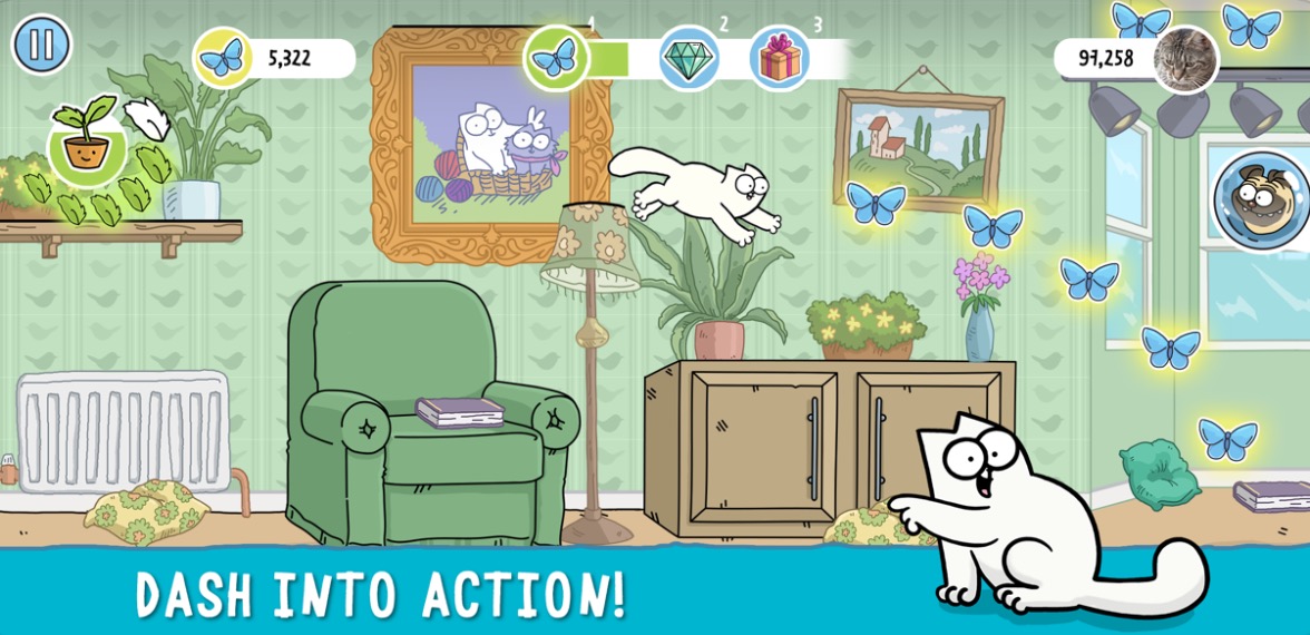 Milovníky koček – a milovníky Simonova kocoura obzvlášť – zaručeně potěší hra Simon’s Cat Dash. Simonův kocour neustále sní o rande se svou tajnou kočičí láskou Chloe. Aby ji patřičně zaujmul, potřebuje ale motýly. Nezbývá vám než se vydat na cestu, na které těchto motýlů musíte pochytat co nejvíce, abyste na Chloe zapůsobili.