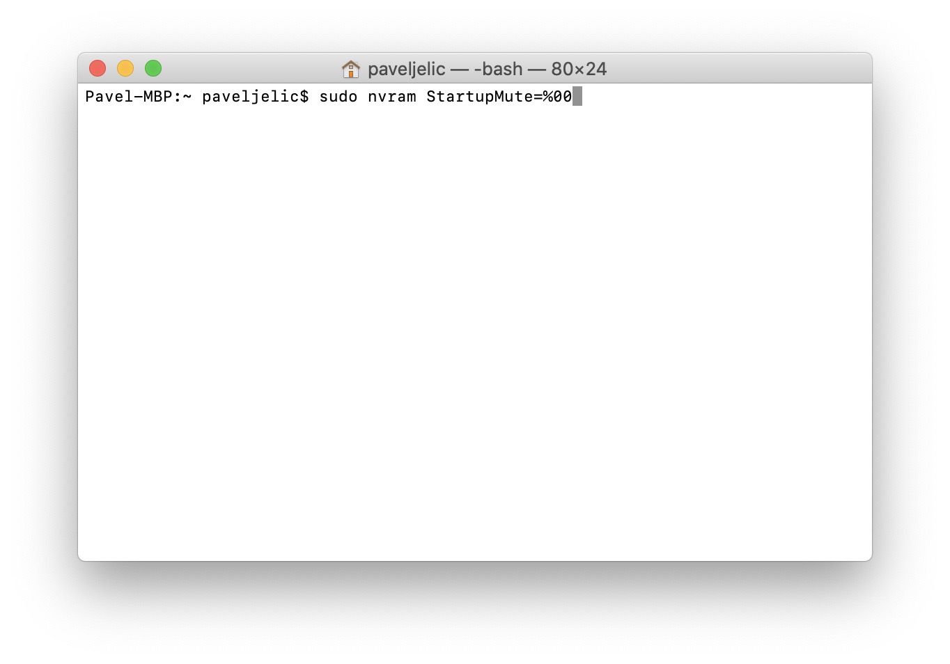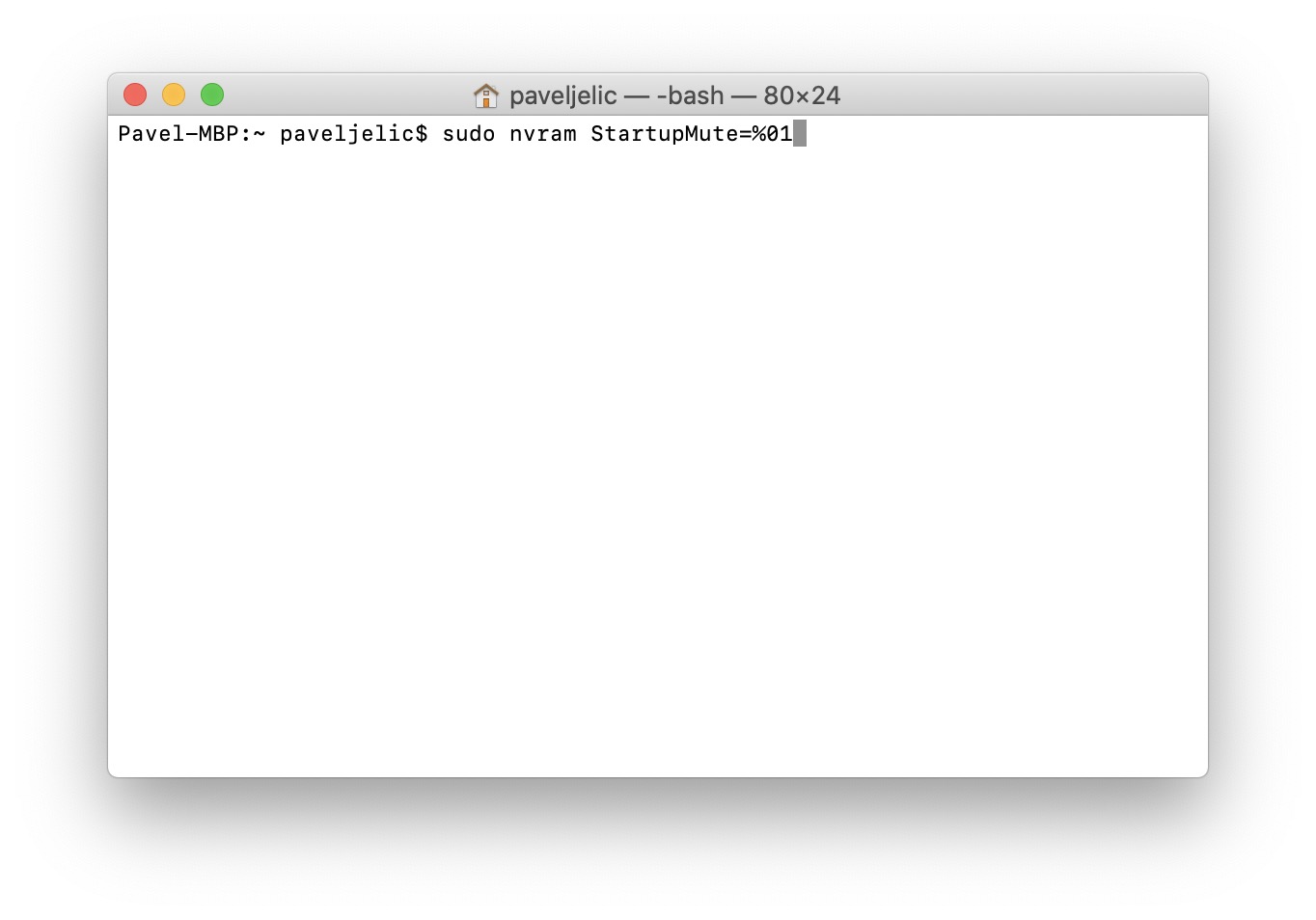 Poté jej do okna Terminálu vložte a potvrďte stisknutím klávesy Enter. Po potvrzení už se uvítací zvuk přehrávat nebude.