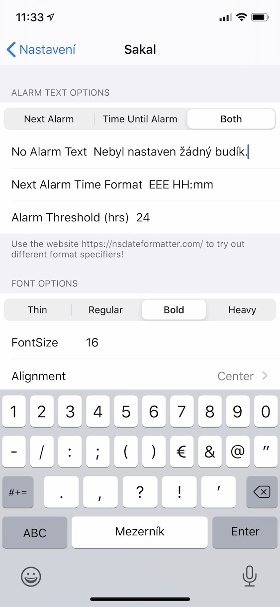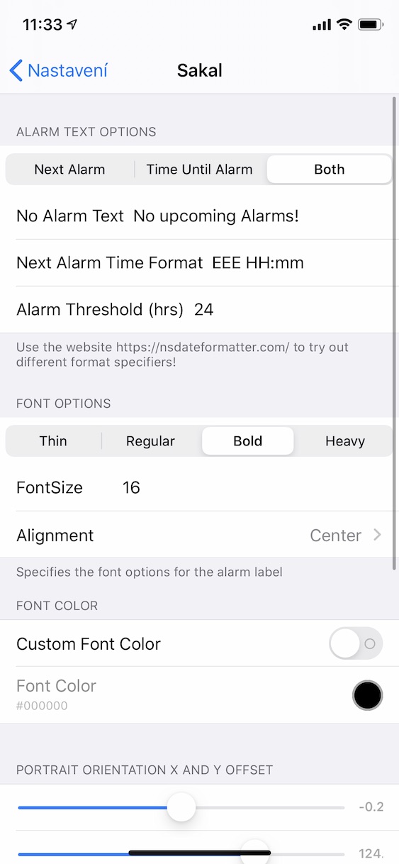 Jakmile tweak Sakal nainstalujete, tak je nutné si nastavit, kde přesně na uzamčené obrazovce se bude informace o budíku nacházet. Toho docílíte tak, že přejdete do nativní aplikace Nastavení, a poté sjedete níže k nainstalovaným tweakům, kde kolonku Sakal rozkliknete. Zde stačí sjet o kus níž, kde se nachází posuvníky. Pomocí nich už si jednoduše nastavíte pozici na klasické obrazovce, a také v landscape módu. Zároveň si nahoře můžete zvolit, zdali se na obrazovce zobrazí pouze informace, kdy bude zvonit, anebo informace, za jak dlouho bude budík zvonit (popřípadě obojí). Zároveň zde máte možnost již zmíněného počeštění a změnu formátu data – v případě, že chcete využít český formát, tak do příslušné kolonky vepište EEE HH:mm. Níže si poté můžete nastavit také velikost či barvu písma. Tweak Sakal můžete stáhnout z repozitáře Packix (https://repo.packix.com) zdarma.