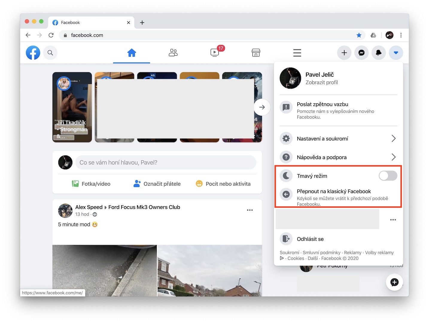 Jak už jsem zmínil v úvodu, tak první verze nového vzhledu je k dispozici jen v určitých prohlížečích. Jableční příznivci využívající Safari mají v tomto případě bohužel smůlu, jelikož jablečný prohlížeč bohužel mezi podporovanými prozatím není. Celý proces aktivace nového vzhledu tak musíte provést například v Google Chrome. Pro aktivaci nového Facebooku se tedy v Google Chrome, či jiném podporovaném prohlížeči, přesuňte na váš facebookový profil. Po přihlášení klepněte v pravém horním rohu na ikonu malé šipky a z menu, které se zobrazí, vyberte možnost Přejít na nový Facebook. Facebook vás poté uvítá uvítací zprávou. Po potvrzení si můžete konečně taktéž nastavit, zdali chcete využít tmavého režimu Facebooku, či ponechat režim světlý. Mezi světlým a tmavým vzhledem poté můžete přepínat tak, že opět klepnete v pravém horním rohu na ikonu šipky a z menu si pomocí přepínače aktivujete či deaktivujete tmavý vzhled. Zároveň se zde nachází možnost, pomocí které se můžete vrátit zpět na starý Facebook v případě, že vám nová verze nevyhovuje.