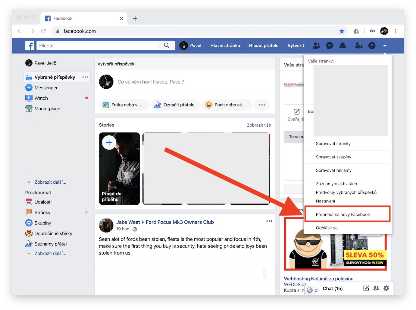 Zdravím, mám dotaz. V šipečce mi facebook nenabízí přepnutí na nový vzhled Facebooku. Co mohu udělat, abych si ho aktivoval/přepnul?