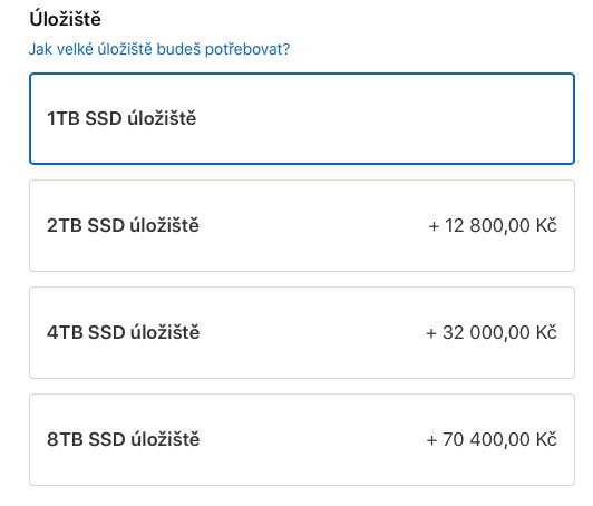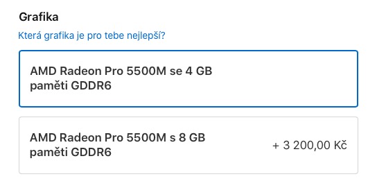 Pokud jste si do tohoto stroje chtěli v minulosti nakonfigurovat 32 GB RAM paměť, připláceli jste 12 800 korun. Nově však tento upgrade vyjde jen na 12 tisíc korun. Pokud jste si pak chtěli v minulosti osadit stroj 64 GB RAM, vyšel vás tento upgrade na 25 600 korun. Nově za něj však zaplatíte o 1600 korun méně. Stejná situace platí i u osmijádrového procesoru Intel Core i9 deváté generace s taktem 2,4 GHz a Turbo Boostem 5,0 GHz. Za ten se dříve připlácelo 6400 korun, nově vás vyjde na 6000 korun. Co se týče úložišť, v případě osazení 2 TB SSD ušetříte 800 korun, u 4 TB SSD ušetříte 2000 korun a u 8 TB SSD pak dokonce 4400 korun. Nejmenší úsporu zažijete u grafické karty AMD Radeon Pro 5500M s 8 GB pamětí GDDR6, která dříve vyšla na 3200 korun a nyní za ní dáte “jen” 3000 korun.