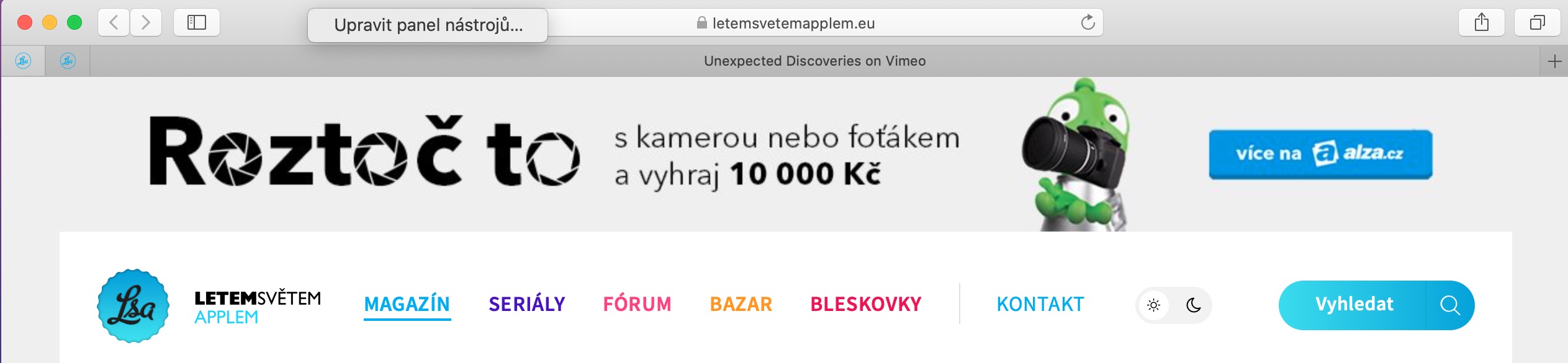Věděli jste, že nástrojovou lištu prohlížeče Safari si můžete plně přizpůsobit? Stačí jen spustit prohlížeč a poté pravým tlačítkem myši kliknout na nástrojovou lištu. Poté klikněte na položku „Upravit panel nástrojů“ a můžete začít s úpravami. Jednotlivé prvky na nástrojovou lištu přidáváte (nebo je z ní naopak odebíráte) jednoduše přetažením. Jakmile budete s novou podobou nástrojové lišty svého prohlížeče spokojeni, stačí změny potvrdit kliknutím na „Hotovo“ v pravém dolním rohu. Jen málokdo z nás má při prohlížení webu otevřenou jen jednu jedinou kartu. Pokud se v otevřených kartách v prohlížeči Safari začínáte ztrácet, není nic jednoduššího než v menu v horní části obrazovky kliknout na Zobrazení -> Zobrazit přehled panelů. Objeví se vám náhledy všech stránek, které máte v Safari otevřené.