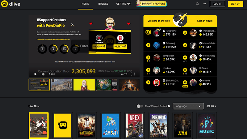 Poměrně novým a nepříliš známým hráčem na trhu je také DLive, pozoruhodná služba běžící na technologii blockchain, díky níž je možné nakupovat virtuální mince Lemon a za ně si pořizovat další bonusy a výhody. Na první pohled sice vypadá platforma obyčejně a nepříliš zajímavě, ale snaží se zadívat pozorněji a zjistíte, že se ve své podstatě jedná o nanejvýš originální počin. Až 90.1% zisků jde totiž přímo tvůrcům obsahu, zatímco zbylých 9.9% se rozděluje mezi nejaktivnější členy komunity. Službu si zamilovala i ikona YouTube v podobě PewDiePie, který nešetřil chválou a vyzdvihoval platformu zejména díky její transparentnosti a možnosti odměňovat přínosné uživatele vlastní měnou. Uvidíme, zda se platforma nakonec vyšvihne a zařadí se po bok ostatních gigantů, zatím se však jedná spíše o experimentální projekt, který má zářnou budoucnost teprve před sebou.