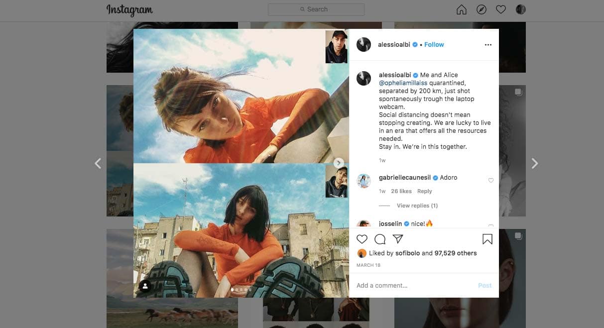 Zatímco ještě před pár týdny by si téměř nikdo neuměl představit, že by se drtivá většina zaměstnanců uchýlila k práci z domu, nyní se tato odvážná myšlenka kvůli karanténním opatřením stává každodenní realitou. Online však nepracují pouze kancelářští pracovníci, nýbrž i nejrůznější kreativní profese, kam spadají například fotografové. Ač by se mohl zdát koncept „focení na dálku“ nereálný, pár zkušených hlav z oboru přišlo s poměrně unikátním nápadem, jak takřka bez omezení vykonávat svou práci jen pomocí internetu a bez nutnosti mezilidského kontaktu. Jedním z nich je i profesionální fotograf Alessio Albi, který pro časopis Condé Nast pořizuje snímky modelek po celém světě. Jelikož momentálně pobývá v Itálii, tedy nejvíce zasažené zemi v Evropě, rozhodl se využít FaceTime a své klienty fotografovat přes videohovor.