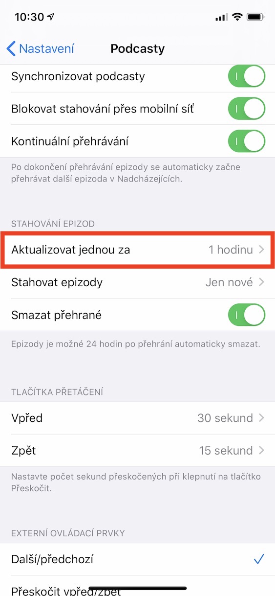 Jak na iPhonu nastavit, jak často se mají vyhledávat nové podcasty