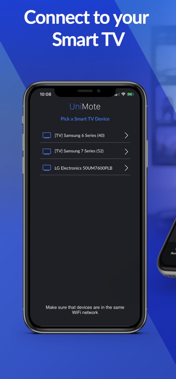 Aplikace UniMote vám umožní snadno a spolehlivě ovládat vaši chytrou televizi s pomocí vašeho iPhonu nebo iPadu. Díky aplikaci UniMote můžete například přepínat kanály, upravovat hlasitost přehrávání nebo dokonce streamovat obsah z paměti vašeho fotoaparátu.