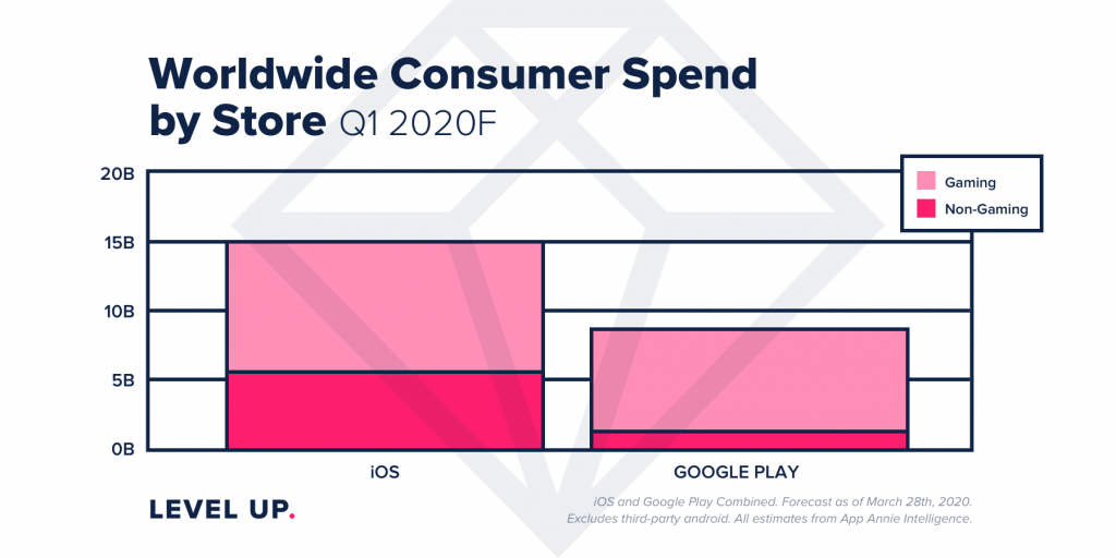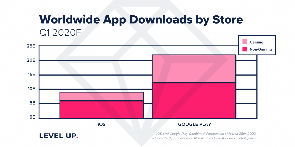 Mnout ruce si ale mohou i technologičtí giganti, jelikož uživatelé utratili v letošním kvartálu rekordních 23.4 miliard dolarů a počet stažení her a aplikací se zvýšil oproti poslednímu loňskému čtvrtletí o 15% na 31 miliard. V meziročním srovnání však App Store výrazně překonává Google Play. Zatímco stažení z jablečného obchodu povyrostla za rok o 15% na 9 miliard, obchod od Googlu zažil nárůst pouhých 5% na 22.5 miliard. Není však divu, Google Play láká především rozvojové trhy jako je ten brazilský a indický, teda dvě země, jež se nejvíce podílely na růstu. V případě App Store byly hlavním tahounem Spojené státy a Čína. Nezahálela však ani Evropa, nejhůře postižená členská země, tedy Itálie, se totiž zasloužila o 15% růst stažení z obou obchodů a vypadá to, že Německo, Velká Británie a Francie budou brzy následovat, jelikož k masivnějšímu rozšíření viru došlo až v posledních týdnech. Co se různorodosti aplikací týče, uživatelé na Androidu nejčastěji sahají pochopitelně zejména po zábavě, hrách a pracovních nástrojích. Ač byly hry v tomto ohledu největším tahounem, růst si zažily také jinak dosti opomíjené kategorie jako je zdraví a fitness, u níž nastal 40% růst, vzdělávání, které se těšilo 35% nárůstu, a pracovní nástroje, jenž si stáhlo o 30% více lidé než v předchozím čtvrtletí.