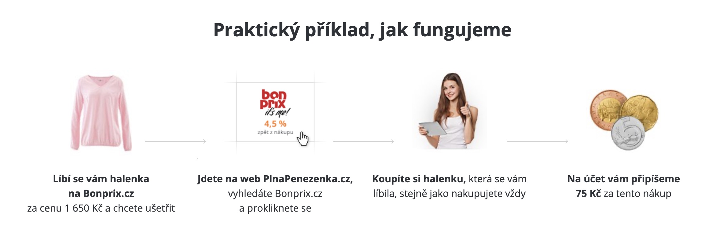 PlnáPeněženka není úplně tak aplikace, jako spíše služba – avšak i přesto vám dokáže ušetřit mnoho peněz. Pokud si vytvoříte účet ve službě PlnáPeněženka, můžete využít tzv. cashbacků. Cashback označuje, jak už název napovídá, „peníze zpět“. Pokud ve vybraných obchodech tedy nakoupíte pomocí odkazu od služby PlnáPeněženka, tak se vám po nákupu vrátí nějaké peníze nazpět. Jakmile si nastřádáte dostatek peněz, tak si je můžete ze svého účtu vybrat a převést na svůj osobní bankovní účet. V některých případech dokáže plnáPeněženka ušetřit až 25 %, avšak většinou má cashback hodnotu několik desítek procent. Uživatelé ji využívají především při platbách na AliExpressu.