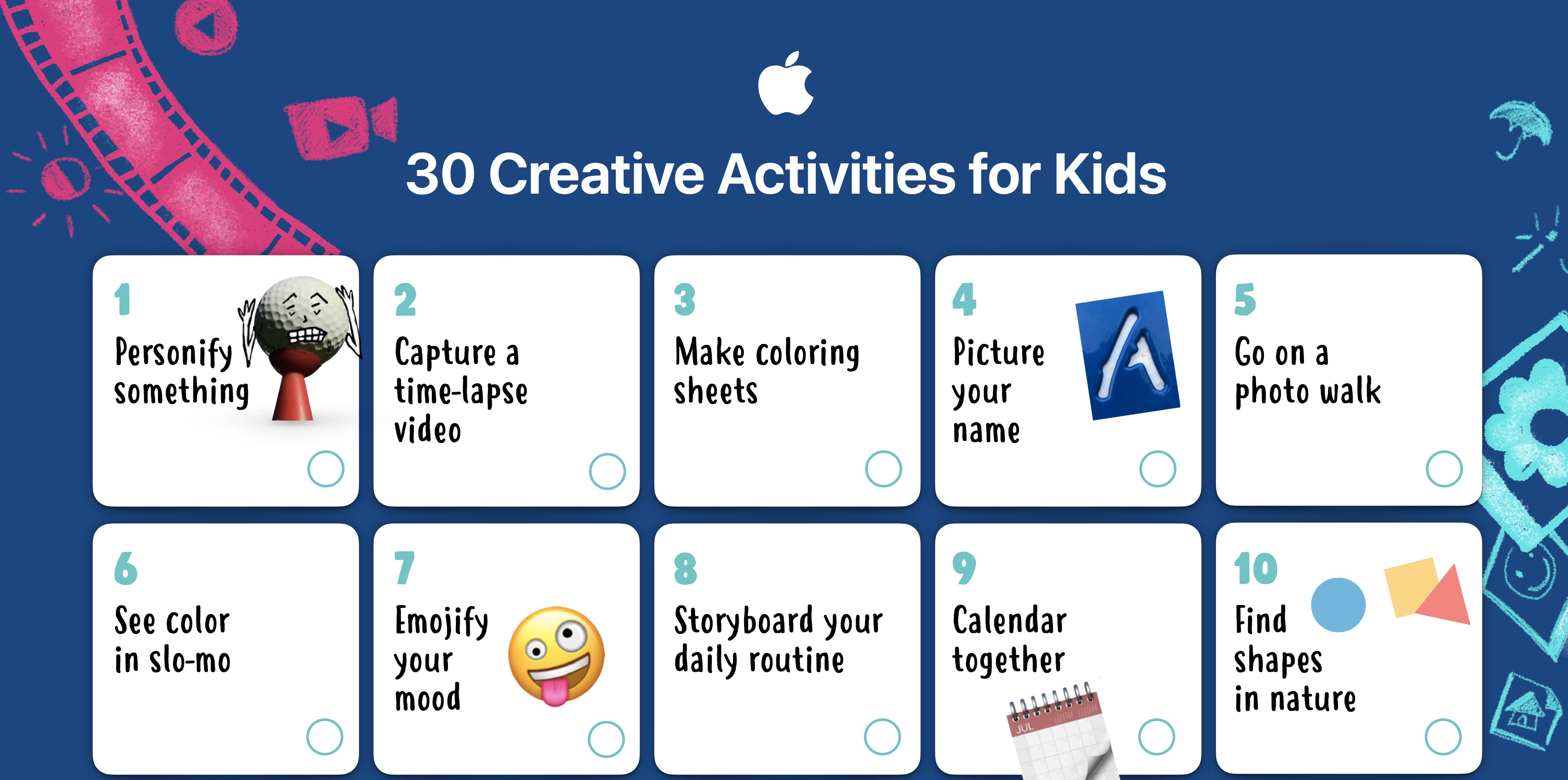 Naprostá změna životního stylu společnosti, které jsme v posledních týdnech kvůli celosvětové pandemii koronaviru svědky, s sebou přinesla mimo jiné i značné množství volného času, který dříve zabíraly různé společenské aktivity. Ten lze využít různě, přičemž jedním z nejlepších způsobů je zaručeně seberozvoj a učení se nových věcí. I Apple vidí současnou situaci svým způsobem jako příležitost k seberozvoji, což dokazuje svým čerstvým krokem – konkrétně vytvořením dětského pracovního listu obsahujícího 30 kreativních aktivit, které mají děti jednak zabavit, ale také hravou formou naučit s Apple produkty.