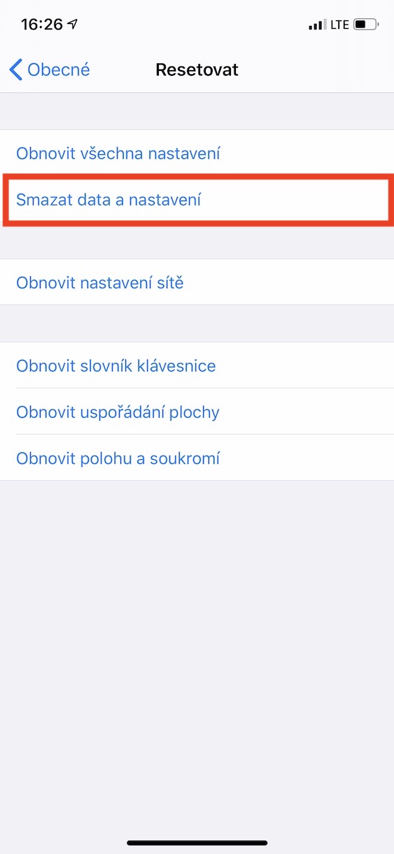 Pokud vám ani výměna baterie nepomohla a zařízení se i po ní stále vypíná, problém se může nacházet v systému. V tomto případě můžete vyzkoušet převedení celého zařízení do továrního nastavení. Toho docílíte tak, že na vašem iPhonu přejdete do Nastavení, kde otevřete sekci Obecné. Zde poté sjeďte úplně dolů a klepněte na možnost Resetovat. Z nabízených možností poté vyberte kolonku Smazat data a nastavení. Tímto se z vašeho zařízení vymažou veškerá data a resetují nastavení – pokud tedy chcete data zachovat, tak si je prvně zálohujte. Jakmile data a nastavení smažete, už není cesty zpět.