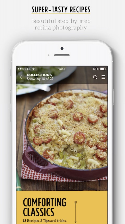 Pokud patříte mezi příznivce populárního kuchaře Jamieho Olivera, neměla by ve vaší „virtuální kuchařské výbavě“ chybět ani jeho aplikace. V ní najdete kromě řady skvělých, chutných a jednoduchých receptů také podrobné návody, tipy a triky pro vaření. Nabídka receptů je pravidelně obohacována o nové přírůstky, takže se určitě nemusíte bát, že by vás aplikace mohla začít nudit.