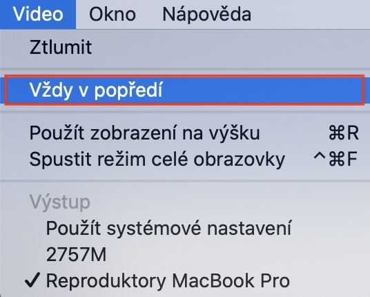 V určitých případech se můžete ocitnout v situaci, kdy potřebujete, aby se okno FaceTime zobrazilo vždy v popředí. Kdykoliv totiž otevřete nějakou aplikaci či jiné okno, tak se FaceTime ve výchozím nastavení chová úplně stejně jako ostatní okna. Není tedy problém okno FaceTime překrýt jiným oknem či aplikací. Když však s někým voláte, tak dotyčného chcete mít ve většině případů vždy v popředí. I na tohle inženýři z Applu mysleli a přidali do nastavení FaceTime možnost, s jejíž pomocí si můžete okno této aplikace nechat zobrazovat vždy v popředí. V tomto případě stačí, abyste se přesunuli do aplikace FaceTime, a poté v horní liště kliknuli na možnost Video. Zde už jednoduše stačí klepnout na možnost Vždy v popředí. Stejným způsobem poté tuto možnost můžete deaktivovat.