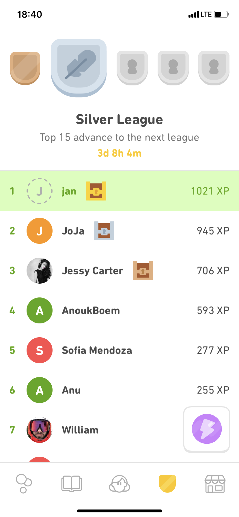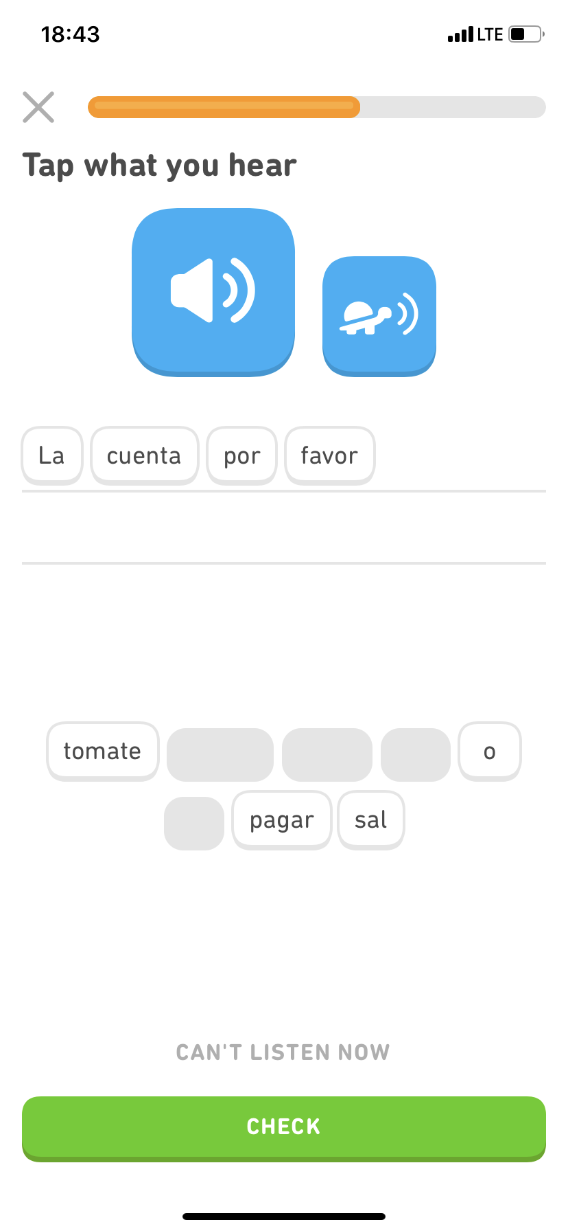 Co se výuky týče, napočítal jsem celkem 159 sekcí, které se dělí do 5 levelů u každé. Každý level se pak dělí nejčastěji na 4 lekce. Materiálu na učení je zde opravdu velké množství a byl by v tom čert, kdyby vám taková nálož nedala poctivý základ. Samotná výuka probíhá košatou formou. Větu napsanou v angličtině buď přeložíte nebo poskládáte z vybraných možností. Při každém kliknutí na španělské slovíčko rovněž uslyšíte výslovnost. Z výslovnosti budete také zkoušeni. Zkrátka a dobře zopakujete větu, kterou uslyšíte. Jindy zase budete muset poslouchat a správně napsat vyslovovanou větu či slovíčko. Občas jsou vám rovněž ukázány obrázky, které musíte správně pojmenovat. K učení jste motivováni i například možností dosažení různých achievementů či postupu do „vyšší ligy“. Pokud se v těchto týdenních výzvách umístíte do třetího místa čeká vás odměna. Je zde také možnost jakýchsi Stories. Ty se vám ale odemknou až po dosažení prvního Checkpointu.