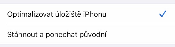 Pokud máte na vašem iPhonu či iPadu málo místa v lokálním úložišti, tak budete mít k dispozici ještě další nastavení Fotek na iCloudu. Když přejdete do Nastavení -> Fotky, tak se vám v tomto případě zobrazí další dva řádky, ve kterých si můžete nastavit, v jaké podobě budou fotografie uložené ve vašem zařízení. Pokud zvolíte možnost Optimalizovat úložiště na iPhonu, tak se v lokálním úložišti budou nacházet pouze zmenšené fotografie v horší kvalitě, čímž ušetříte klidně i několik desítek gigabajtů, na iCloudu však fotografie budou v plném rozlišení. Pokud zvolíte možnost Stáhnout a ponechat původní, tak jak ve vašem iPhonu, tak na iCloudu, budou fotografie v plném rozlišení. Na iPhonu tak nedojde k uvolnění místa.