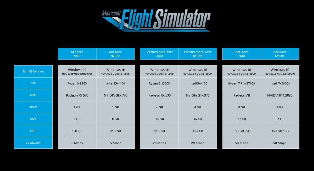 HW požadavky Microsoft Flight Simulator