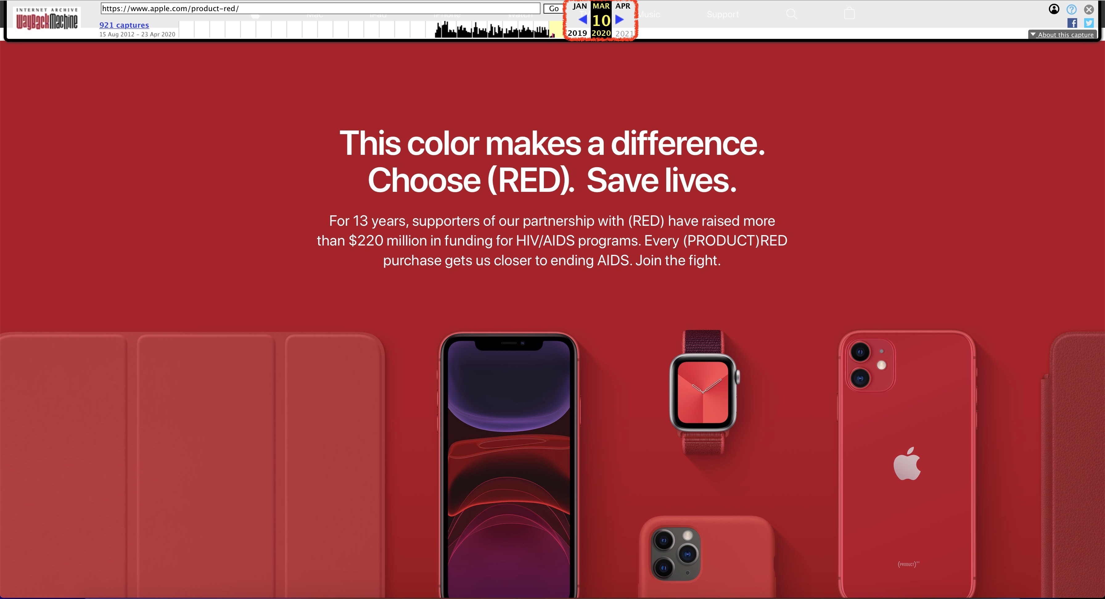 Bohužel není zcela jasné, kdy přesně byl boj proti HIV/AIDS u (PRODUCT)RED produktů změněn na boj proti COVID-19. Díky webovému archivu nicméně můžeme s jistotou říci, že to bylo někdy mezi 10. březnem (poslední záznam ve webarchivu) až 15. dubnem, kdy Apple iPhone SE v červené edici bojující proti COVID-19 představil. Nicméně vzhledem k tomu, jak důkladně jsou jeho kroky monitorovány, se dá předpokládat, že ke změně muselo dojít skutečně až 15. dubna či maximálně několik málo dnů před ním, jelikož by si toho jinak zcela určitě všímaví jablíčkáři všimli. S víceméně stoprocentní jistotou se tedy dá říci, že telefony, které začal Apple prodávat oficiálně dnes, leží na jeho skladech možná již více než měsíc, jelikož byly chystány na představení na konci března, kdy ještě Apple bojoval skrze (PRODUCT)RED iPhony s HIV a AIDS. Koronavirus však všechny plány zmařil.