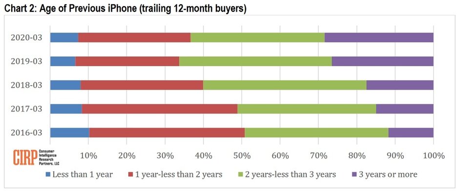 Jak je ze statistik vidět, iPhone 11 takřka dokonale kopíruje křivku svého předchůdce, který za rok 2018 dokázal zaujmout 39% zákazníků kupujících iPhone. To ostatně potvrdil i Josh Lowitz, spoluzakladatel CIPR, podle něhož prodeje iPhonu 8 a 8 Plus se svým 13% podílem utlumují, zatímco nová generace se hlásí o slovo a přebírá vládu. S tím by mohl pohnout i chystaný nový iPhone SE, který je za svou cenu bezkonkurenční a celá řada nových zákazníků sáhne právě po tomto modelu z důvodu dostupnosti. Jedinou vadou na kráse je tak podle Joshe fakt, že uživatelé neupgradují své telefony tak často jako před lety a svého modelu se drží dlouhá léta. Zatímco ještě před 4 lety si déle než tři roky nechávalo svůj jablečný smartphone jen 12% zákazníků, nyní se toto číslo vyšplhalo na 28%. Podle analytiků za nárůst může především segment služeb, který je ke starším modelům benevolentnější, a uživatelé tak nemají důvod rychle přecházet na novou generaci. Na druhou stranu, když už se spotřebitelé rozhodnou pro koupi nového modelu, většinou zvolí dražší a prémiovější. Uvidíme, zda se příští měsíce ponesou v podobných číslech.
