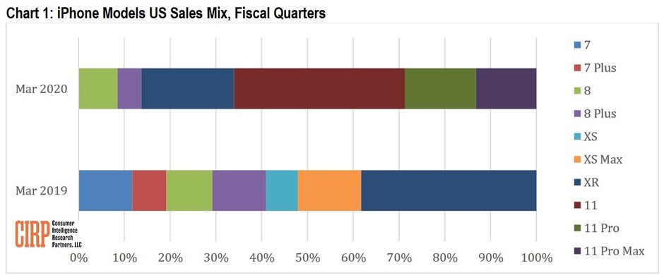 Co si budeme povídat, iPhone XR byl nevídaný úspěch a bylo otázkou, zda Apple dokáže znovu přijít s něčím, co bude konkurovat dražším modelům nikoliv cenou, ale vybavením. Tak se ale naštěstí stalo a jablečná společnost vydala iPhone 11, který sice obsahoval o kameru méně a životností baterie se příliš chlubit nemohl, ale zato nabízel přijatelnou cenovku a především nenáročný vstup do ekosystému pro nové zákazníky. Právě tento aspekt se podle agentury pro výzkum trhu a chování spotřebitelů, CIPR, podepsal na podobném úspěchu jaký zažil jeho starší předchůdce. Jablečný iPhone 11 si tak vysloužil 39% podíl na prodejích všech modelů za rok 2019 a stal se ve Spojených státech hitem. Ač by se mohlo zdát, že jeho sláva povadne a uživatelé raději budou čekat na novou generaci, opak se stal pravdou a iPhone 11 zazářil i v letošním čtvrtletí, kdy se zasloužil o 37% všech prodejů. Spolu s prémiovými modely Pro a Pro Max se tak podílel na celkových prodejích 66%.