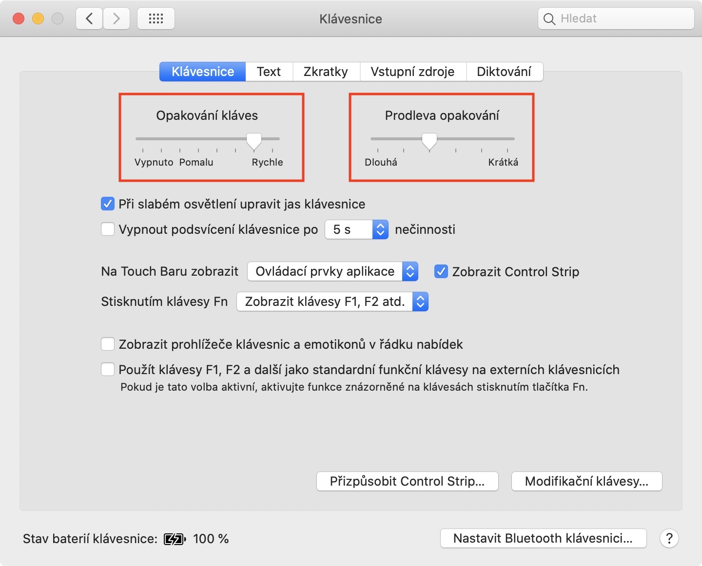 Jak v macOS nastavit prodlevu a opakování klávesy pro mazání