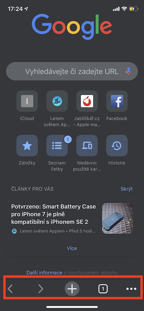 Podobně jako v Chromu na Macu nebo PC můžete i v iOS a iPadOS verzi tohoto prohlížeče efektivně pracovat s kartami – všechny důležité položky pro práci s kartami najdete na spodní liště prohlížeče. Šipky po pravé straně slouží k pohybu v historii stránek na dané kartě. Napravo od těchto šipek najdete ikonku se znaménkem „+“. Po klepnutí na něj můžete do prohlížeče zadat novou webovou adresu nebo výraz, najdete zde také doporučené stránky. Napravo od znaménka „+“ se nachází ikonka s údajem o počtu otevřených karet. Pokud na tuto ikonku klepnete, zobrazí se vám náhledy karet – pořadí otevřených karet můžete na této stránce měnit podržením a přetažením. Na stránce s náhledy ještě chvíli zůstaneme – v její horní části najdete ikonku pro přechod do anonymního režimu, v pravé části horní lišty pak najdete přehled karet ze všech vašich zařízení.