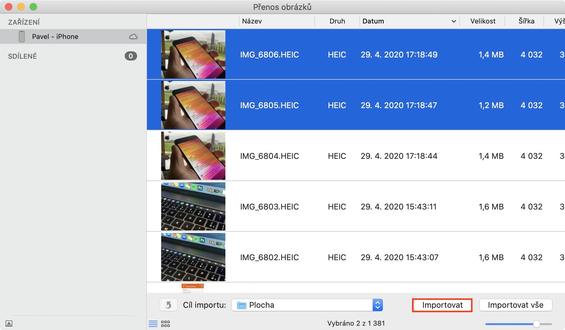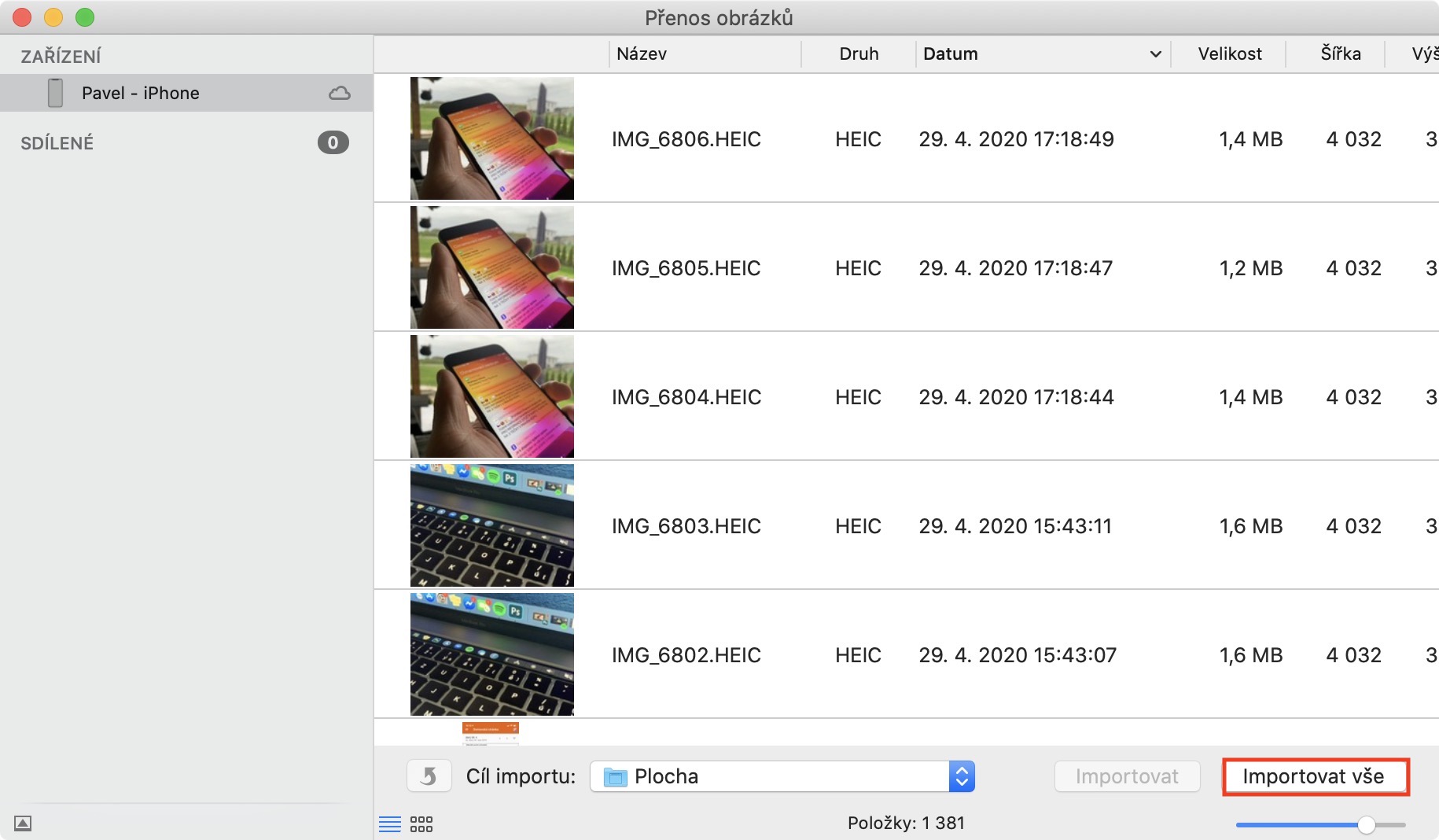 Jak exportovat fotky z iPhone do Macu