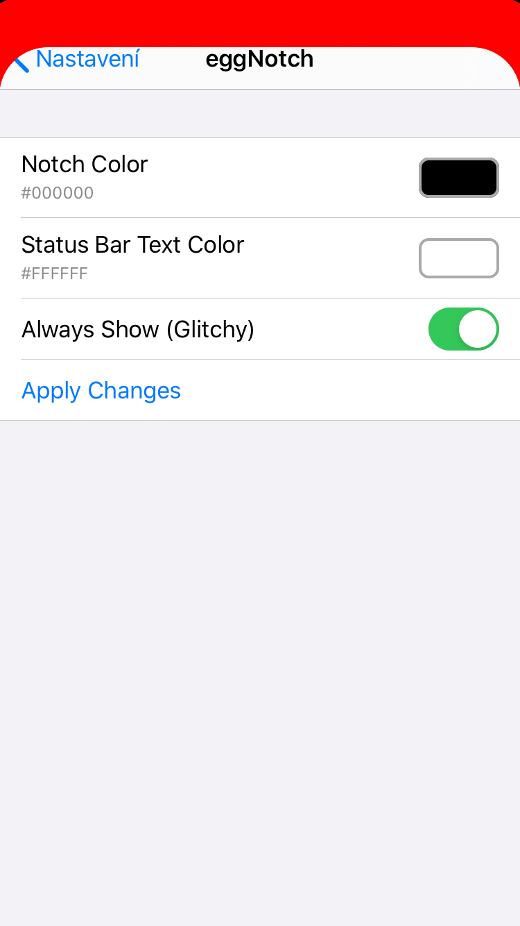 Po instalaci tweaku eggNotch nemusíte prakticky nic nastavovat, vše funguje ihned po jeho aktivaci. I přesto jsou však k dispozici určitá nastavení, se kterými si můžete chování tweaku určitým způsobem přizpůsobit. Předvolby tweaku eggNotch najdete klasicky v nativní aplikaci Nastavení, kde stačí sjet o kus níže k sekci se všemi tweaky, kde poté klepněte na kolonku eggNotch. Zde si můžete nastavit barvu, která se okolo notche zobrazí (defaultně černá), společně s barvou textu v horní liště. Nachází se zde také možnost pro permanentní aktivaci tweaku, avšak vzhledem k tomu, že je tweak stále ve fázi testování, tak tato funkce nemusí občas fungovat podle představ (například v určitých aplikacích, atd.). Tweak eggNotch je k dispozici zdarma v repozitáři BigBoss (http://apt.thebigboss.org/repofiles/cydia/).