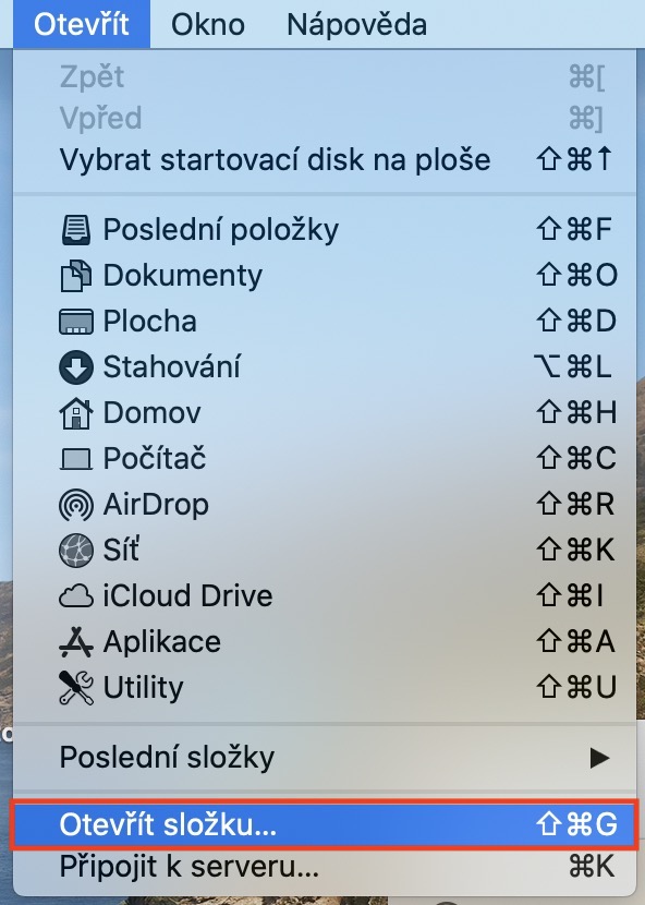 Pokud na vašem macOS zařízení nemůžete aktivovat FileVault, tak postupujte následovně. Nejprve se přesuňte do aktivního okna aplikace Finder. V horní liště poté klepněte na možnost Otevřít a z menu, které se zobrazí, vyberte možnost Otevřít složku… Otevře se nové okno s textovým polem. Poté si zkopírujte tuto cestu: